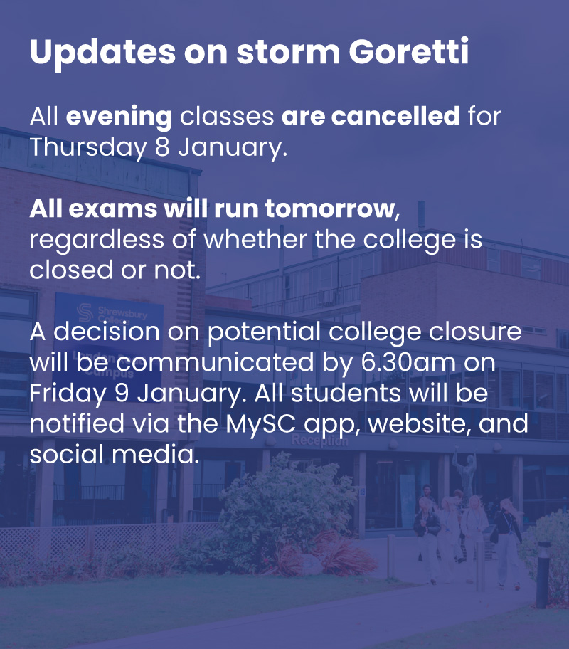 We support you in ensuring that your next step after Shrewsbury College fits your ambitions, whether it’s university, an apprenticeship, or securing employment in your chosen field.